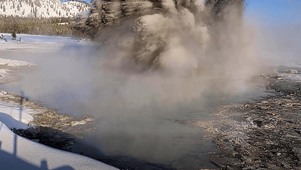 Yellowstone is famous for its beloved geysers hurled into the air when nearby magma heats water to boiling point, and for being the site of a once and (probably) future supervolcanic eruption. There’s a lot of space in between those when it comes to the energy and danger of explosions, and sometimes sites at Yellowstone let off some energy at the lower end of that intermediary range.