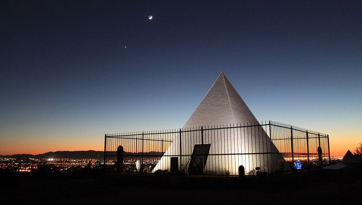 In Papago Park, the desert park spanning the cities of Phoenix and Tempe, Arizona, there’s a pyramid. It’s not huge – only 20 feet across at its base and 20 feet high, or 6.1 by 6.1 by 6.1 meters for those working in metric. That’s the equivalent of lopping off the top 3 percent of the Great Pyramid of Giza and moving it over to the Grand Canyon state; you could fit about 30 into a hot air balloon, assuming you were careful with the pointy bits; it would take a little less than seven cement mixers’ worth of cement to construct it.